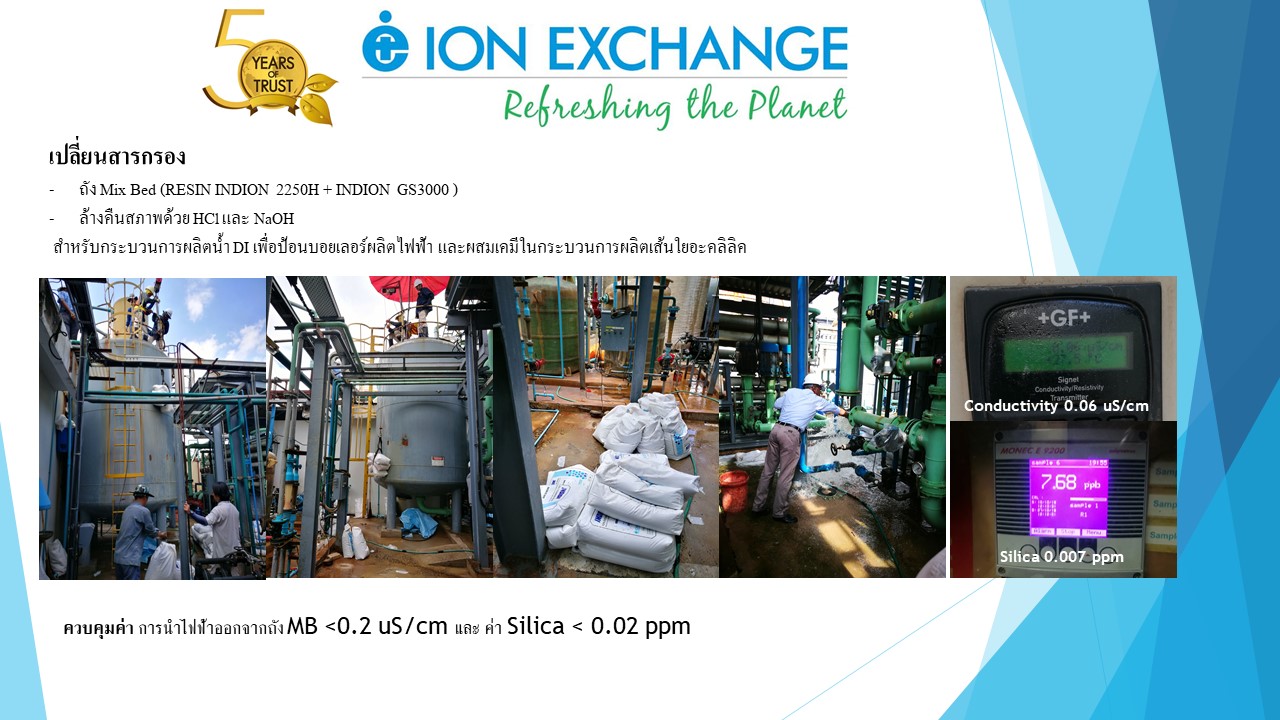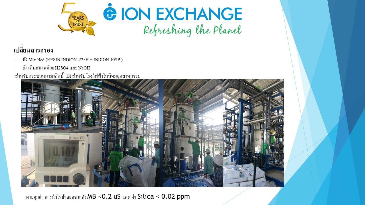 บริษัท Ion Exchange เราเป็นผู้บุกเบิกระบบบำบัดน้ำมานานกว่า 56ปี ซึ่งได้รับการยอมรับในระดับสากลว่าเราเป็นบริษัทชั้นนำด้านการจัดการน้ำและสิ่งแวดล้อม *บริษัท ไอออน เอ็คซเช้นจ์ รับทำระบบ Water Treatment ระบบบำบัดน้ำเสีย Wastewater และ Recycle plants มีประสบการณ์มากกว่า 56 ปี และที่สาขาประเทศไทย จดทะเบียนในนาม บริษัท ไอออนเอ็คซ์เช้นจ พีเอสเอส จำกัด และ ไอออน เอ็คซเช้นจ์ เอเชีย แปซิฟิก จำกัด ประสบการณ์มากกว่า 28 ปี *บริษัท ไอออน เอ็คซเช้นจ์ มีโรงงานผลิตเรซิ่นแลกเปลี่ยนไอออน ภายใต้แบรนด์ INDION Resins ที่ผ่านการวิจัยและพัฒนามายาวนานกว่า 50 ปี ทำให้ได้ผลิตภัณฑ์ที่ดีมีคุณภาพ ตอบโจทย์ลูกค้าในทุกๆอุตสาหกรรม มีหลากหลายเกรด ทั้งเรซินเกรดอุตสาหกรรม (Softener resin Industrial Grade) ,เรซินเกรดอาหาร-เครื่องดื่ม (Softener resin Food Grade), เรซินน้ำดีมีน (DM Plant - Cation, Anion and Mixed Bed Resin ) เรซินผลิตยา ( Pharma), เรซินผลิตน้ำตาล (Sugar) ฯลฯ...ผลิตภัณฑ์ของเราได้มาตรฐานรับรอง ISO 9001, ISO 14001 , Halal, WQA ,KOSHER , FDA, จัดจำหน่าย ทั่วทวีปเอชีย และยุโรป และเนื่องจากเราผลิตเรซินเอง จึงทำให้ราคาเรซินของเรามีราคาที่ค่อนข้างถูกมากๆ เมื่อเทียบกับผู้นำเข้าอื่น **บริษัท ไอออน เอ็คซเช้นจ์ (อินเดีย) มีโรงงานผลิต RO-Membrane /Brand HYDRAMEMรวมไปถึงอุปกรณ์และเครื่องกรองROทุกขนาด ***นอกจากโรงงานผลิตเรซินและเมมเบรน บริษัท ไอออน เอ็คซเช้นจ์ ยังมีโรงงานผลิต เคมี และอุปกรณ์บำบัดน้ำอื่นๆ เช่น Cooling Chemical, Boiler Chemical, Polymers, เครื่องตรวจสอบคุณภาพน้ำถังกรอง/เครื่องกรองทุกชนิด , RO-Pressure vessel, เครื่องกรองน้ำกลั่น เป็นต้น ***รับปรึกษาฟรี*** หากต้องการข้อมูลเพิ่มเติม กรุณาติดต่อสอบถาม บริษัท ไอ ออน เอ็คซเช้นจ์ พีเอสเอส จำกัด อาคาร PM Tower ชั้นที่ 9 เลขที่ 731 ถนน อโศก-ดินแดง แขวงดินแดง เขตดินแดง กรุงเทพมหานคร 10400 โทร 02-246 7211, 0836531868 Email kullachat.k@ionexchangeglobal.com , cchat0422@gmail.com